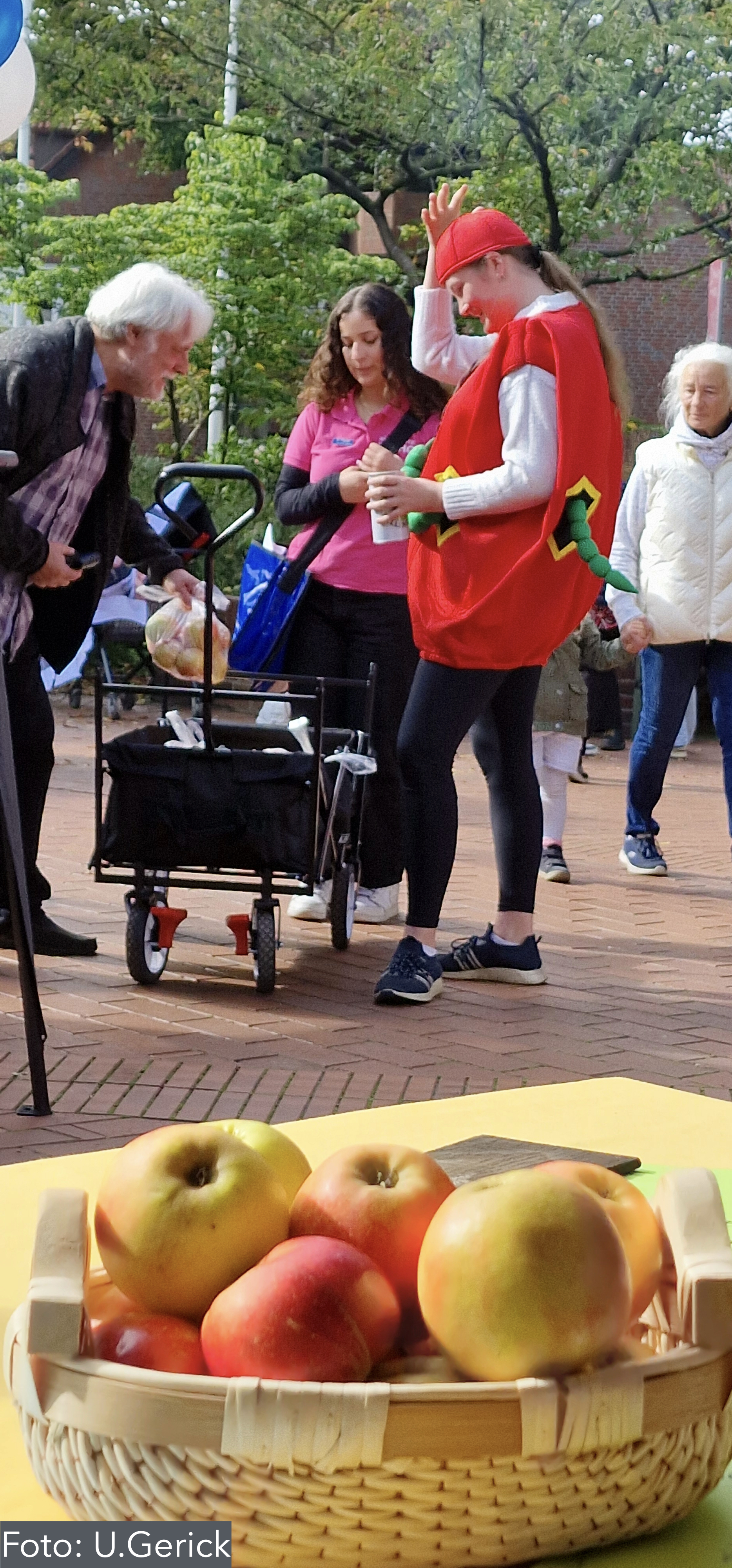 Am Sonntag, den 29. September, hatten wir ab 11 Uhr auf der „Vereinsmeile“ unseren Informationsstand aufgebaut. Wir hatten einen „Premiumplatz“ nahe dem Haupteingang - überdacht. Die Sorge, dass es wie am Nachmittag des 28. September regnen würde, war jedoch unbegründet. Wir hatten schönes Wetter, viele Besucher strömten über den Vorplatz des Rathauses und die für das Apfelfest reservierten, angrenzenden Bereiche. Unseren neuen Flyer hatten wir in ausreichender Anzahl mitgebracht und verteilt. Sehr erfreulich war, dass sich etliche Besucher für unsere Arbeit interessierten und wir einige engere Kontakte knüpfen konnten. In den nächsten Wochen finden dann die ersten Gespräche zwecks Aufnahme statt. Also rundum eine gelungene Veranstaltung!